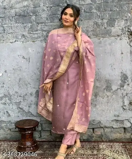 Simple Soft Silk Kurtha Set With Organza Shawl