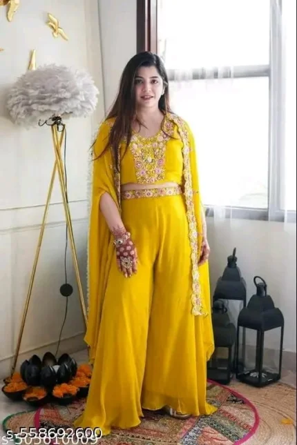 Yellow Sharara Set With Belt And Neckless
